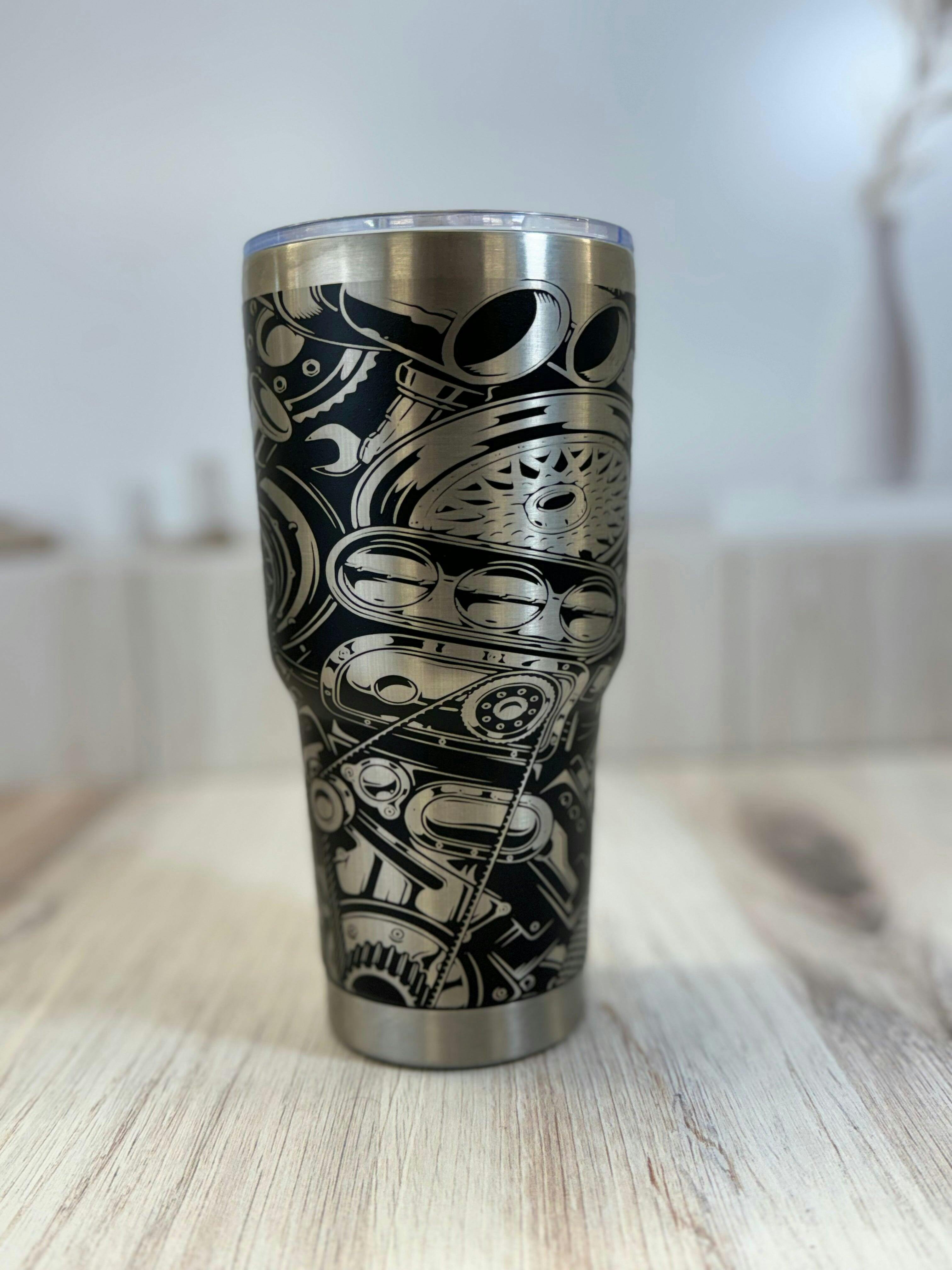 These engraved 30oz tumblers with a lid are a perfect gift for any gearhead/mechanic in your life! They are double-wall, vacuum insulated construction to provide superior heat and cold retention.