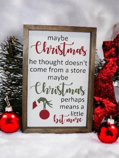 Maybe Christmas Perhaps Means A Little Bit More Farmhouse Sign | Grinch Quotes | Christmas Doesn't Come From A Store
