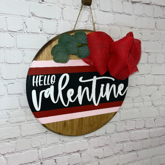 Valentine's Front Door Sign | Hello Valentine Front Door Decor | Round Door Sign | Door Hanger | Valentines Day Decor